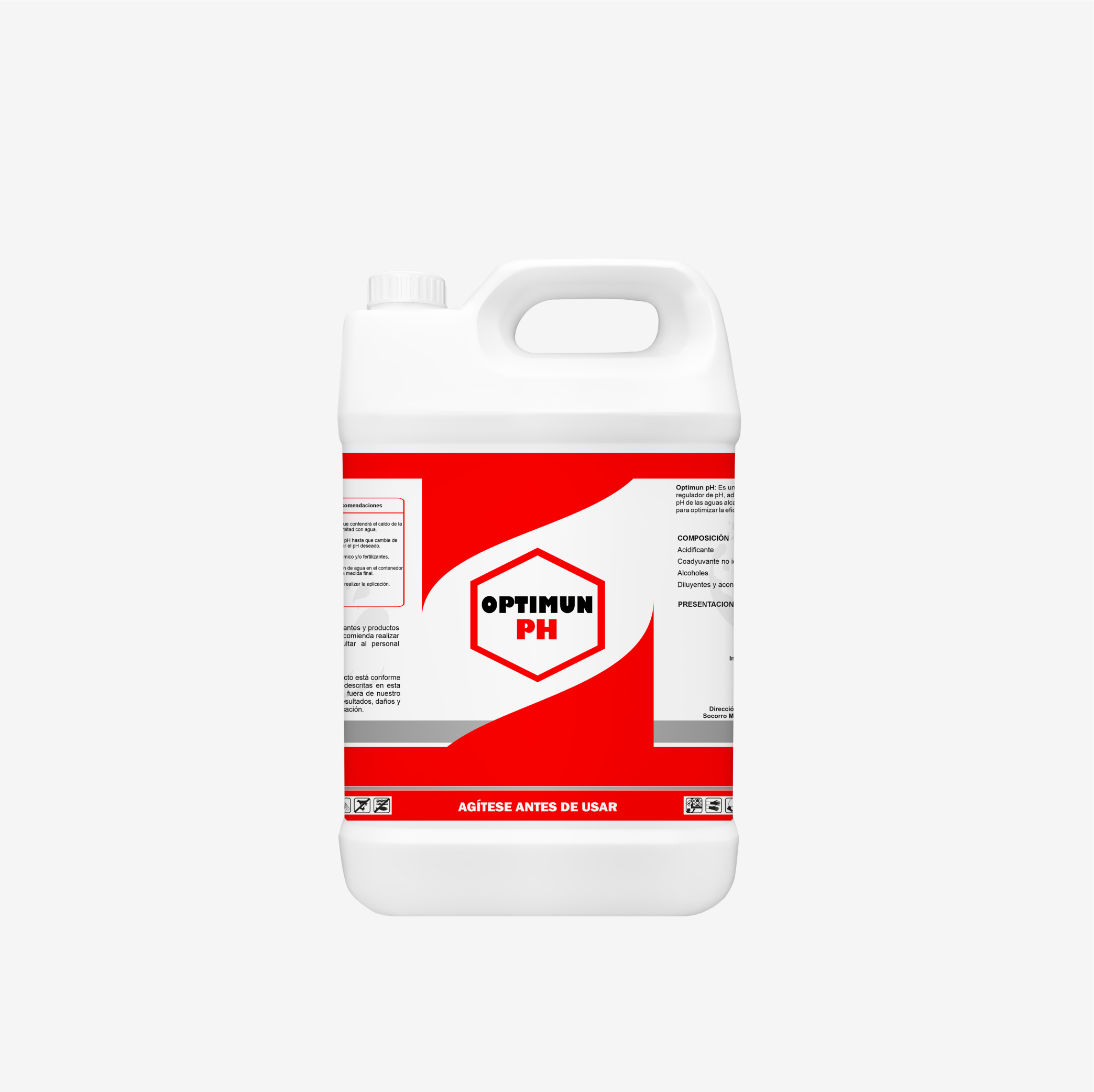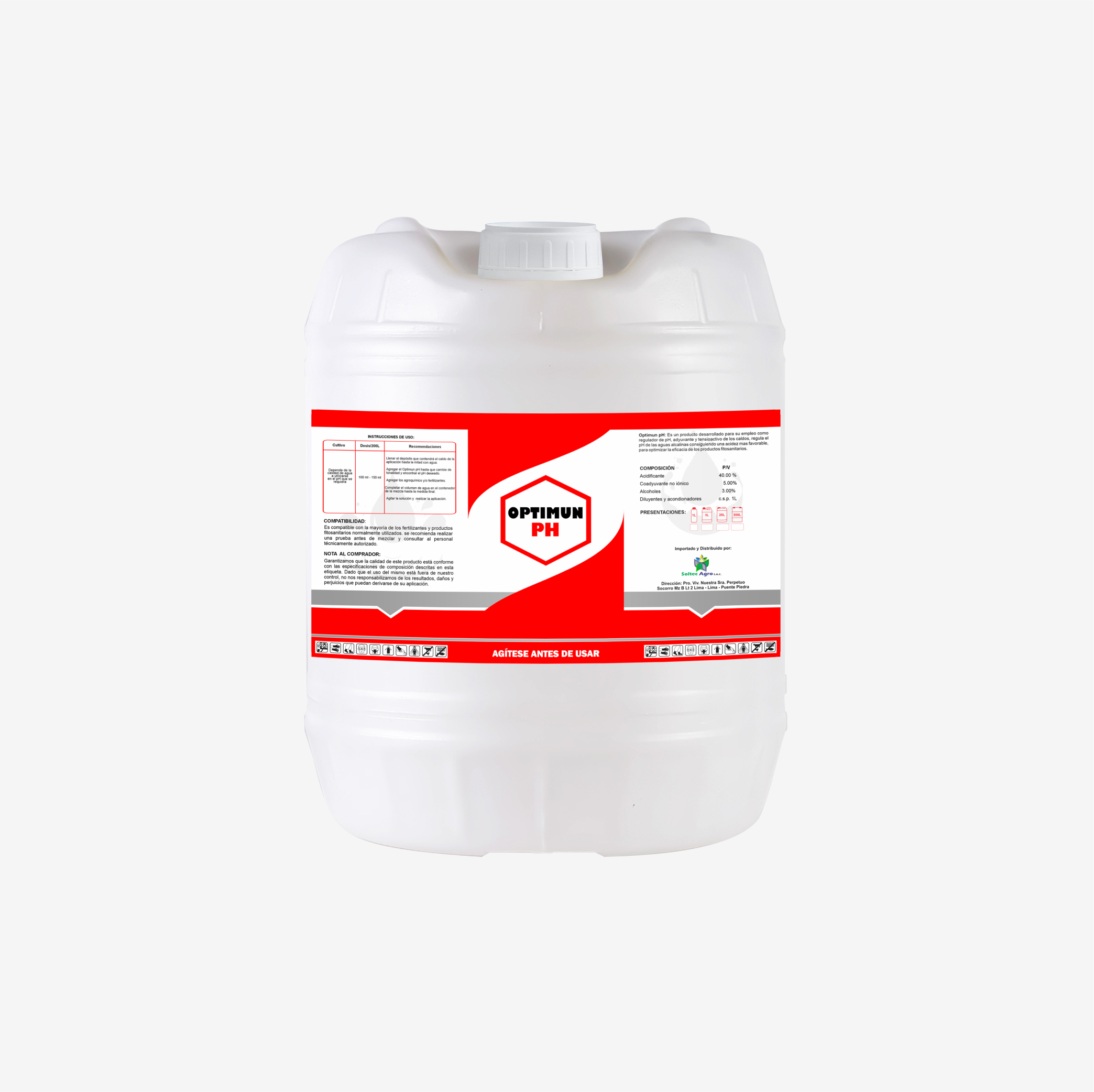 Optimun pH: Es un producto desarrollado para su empleo como, regulador de pH, adyuvante y tensioactivo. El indicador de pH permiten una rápida dispersión y absorción estomática de pesticidas, fungicidas, herbicidas, reguladores del crecimiento, bioestimulantes, fertilizantes foliares.