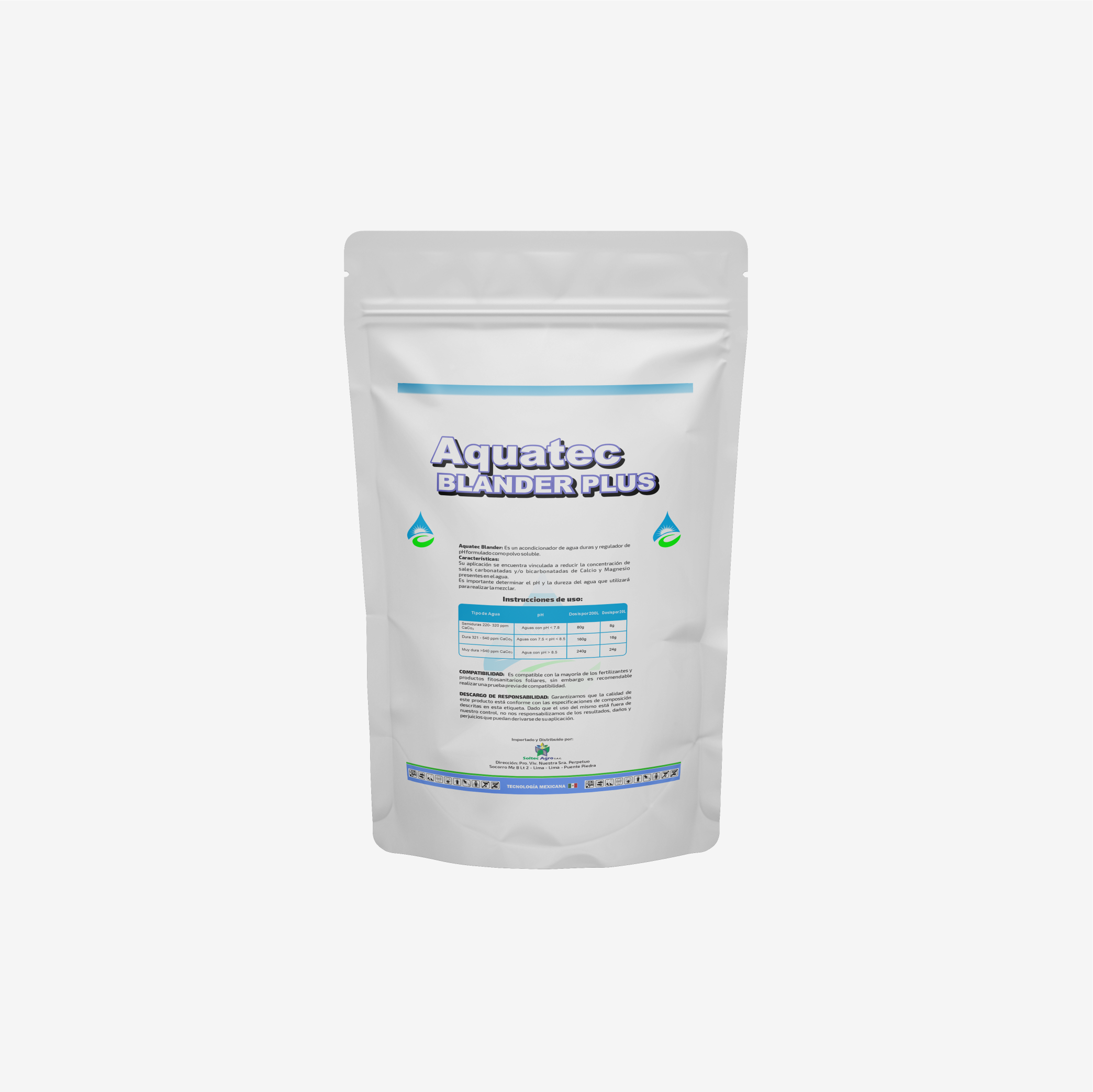 AQUATEC BLANDER PLUS: Es un acondicionador de aguas duras y regulador de pH formulado como polvo soluble.