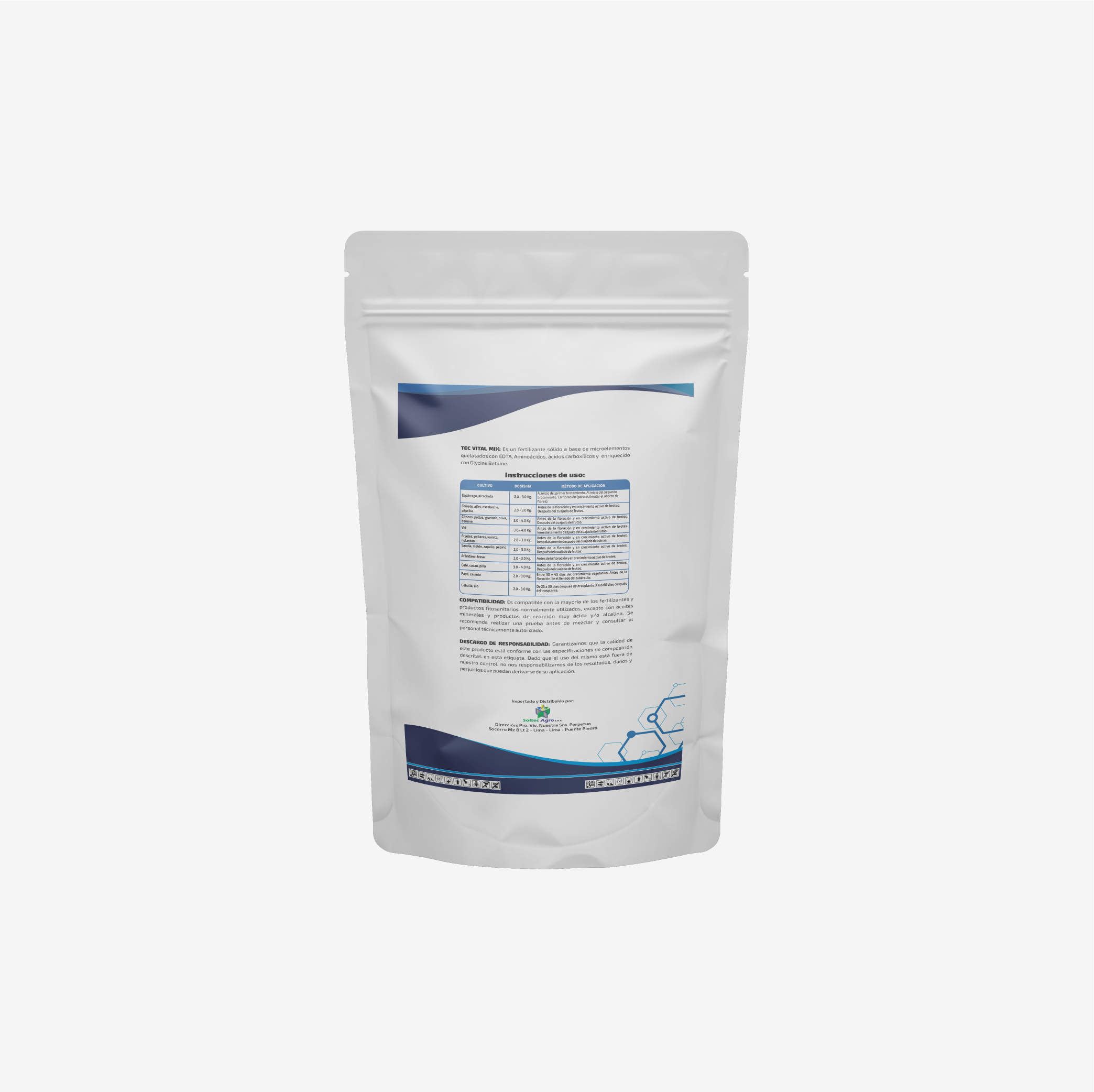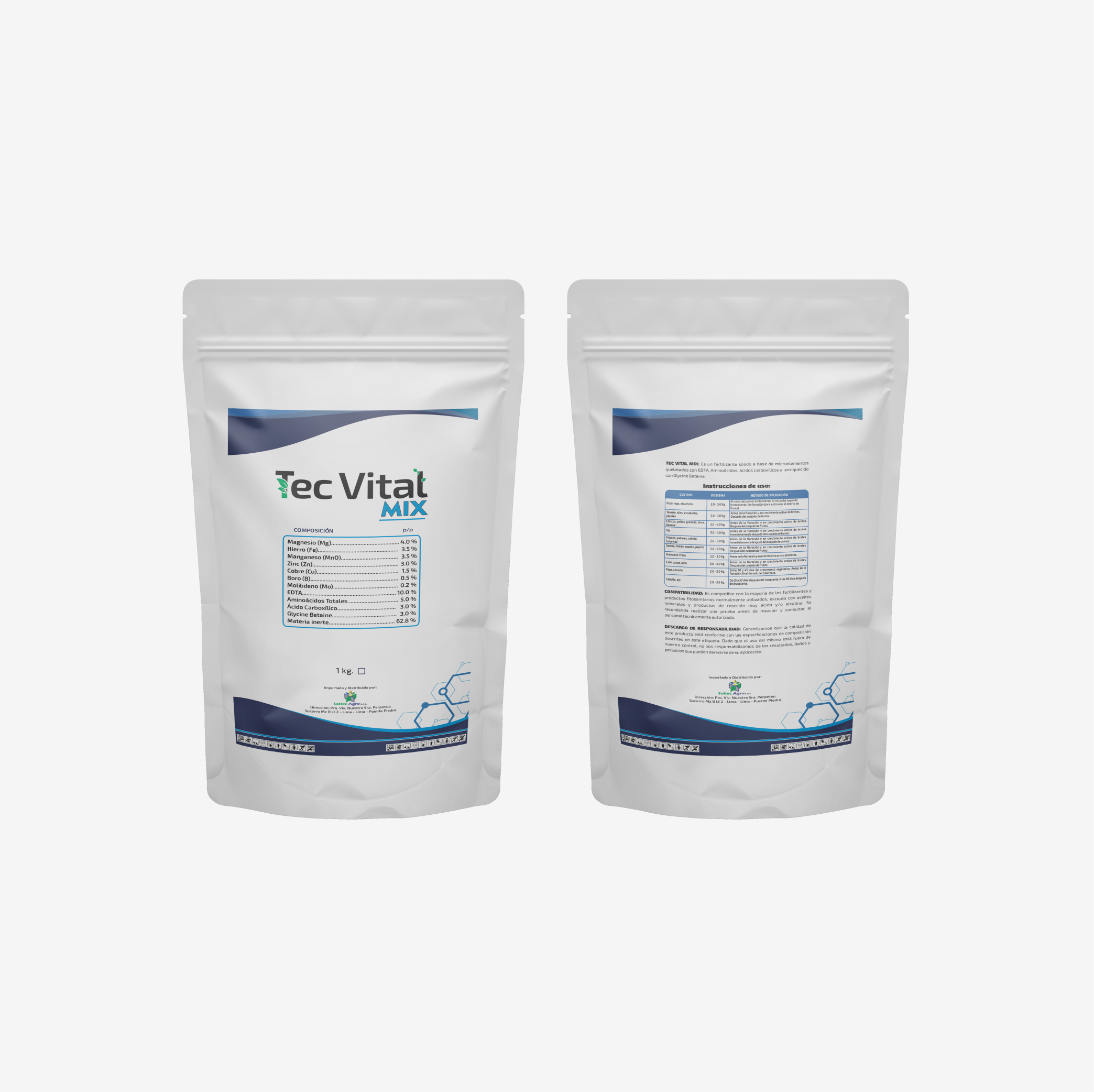 TEC VITAL MIX: Es un fertilizante sólido a base de Microelementos quelatados con EDTA, Aminoácidos, ácidos carboxílicos y enriquecido con Glycine Betaine.