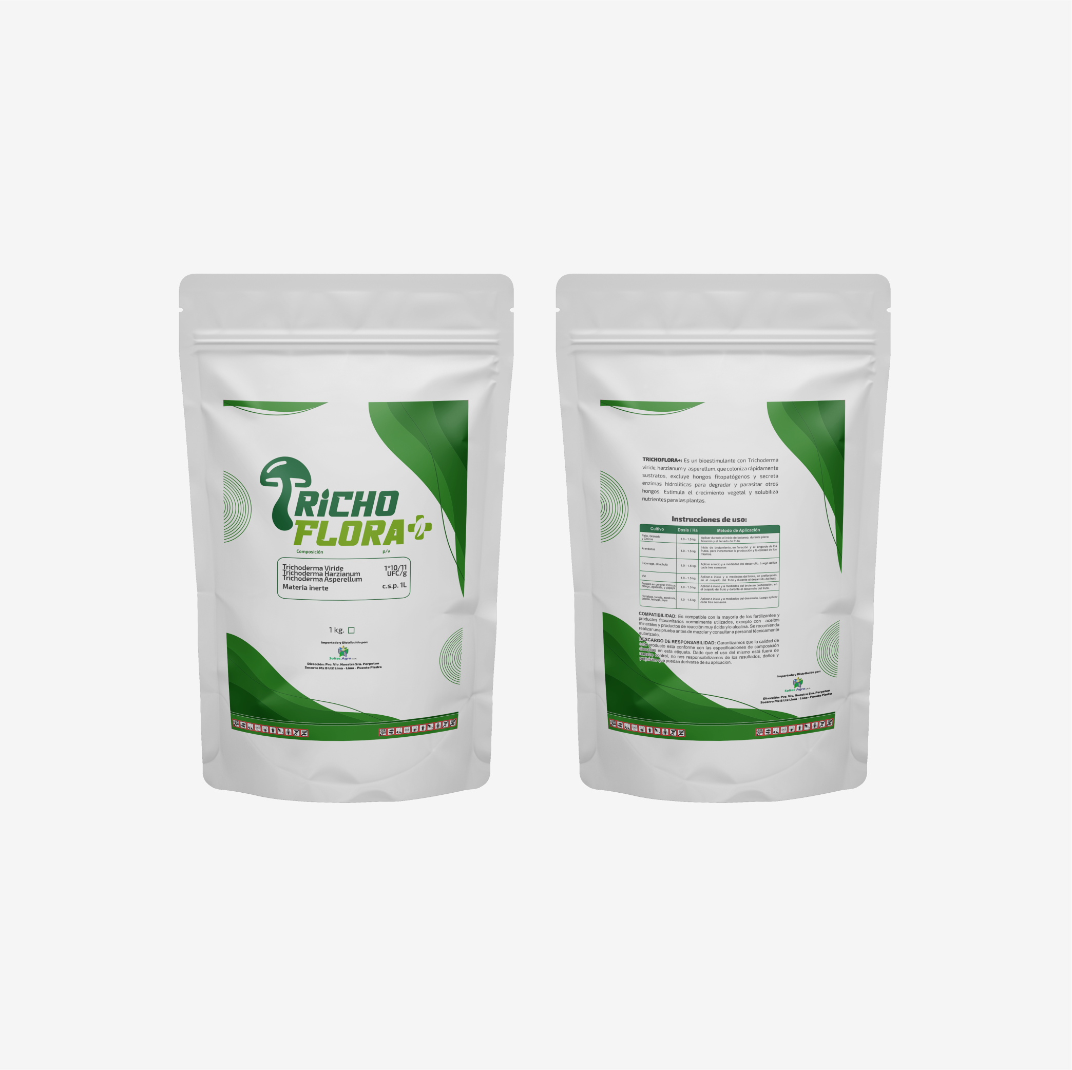 TRICHOFLORA +: Es un bioestimulante con Trichoderma viride, harzianum y asperellum, que coloniza rápidamente sustratos, excluye hongos fitopatógenos y secreta enzimas hidrolíticas para degradar y parasitar otros hongos. Estimula el crecimiento vegetal y solubiliza nutrientes para las plantas.