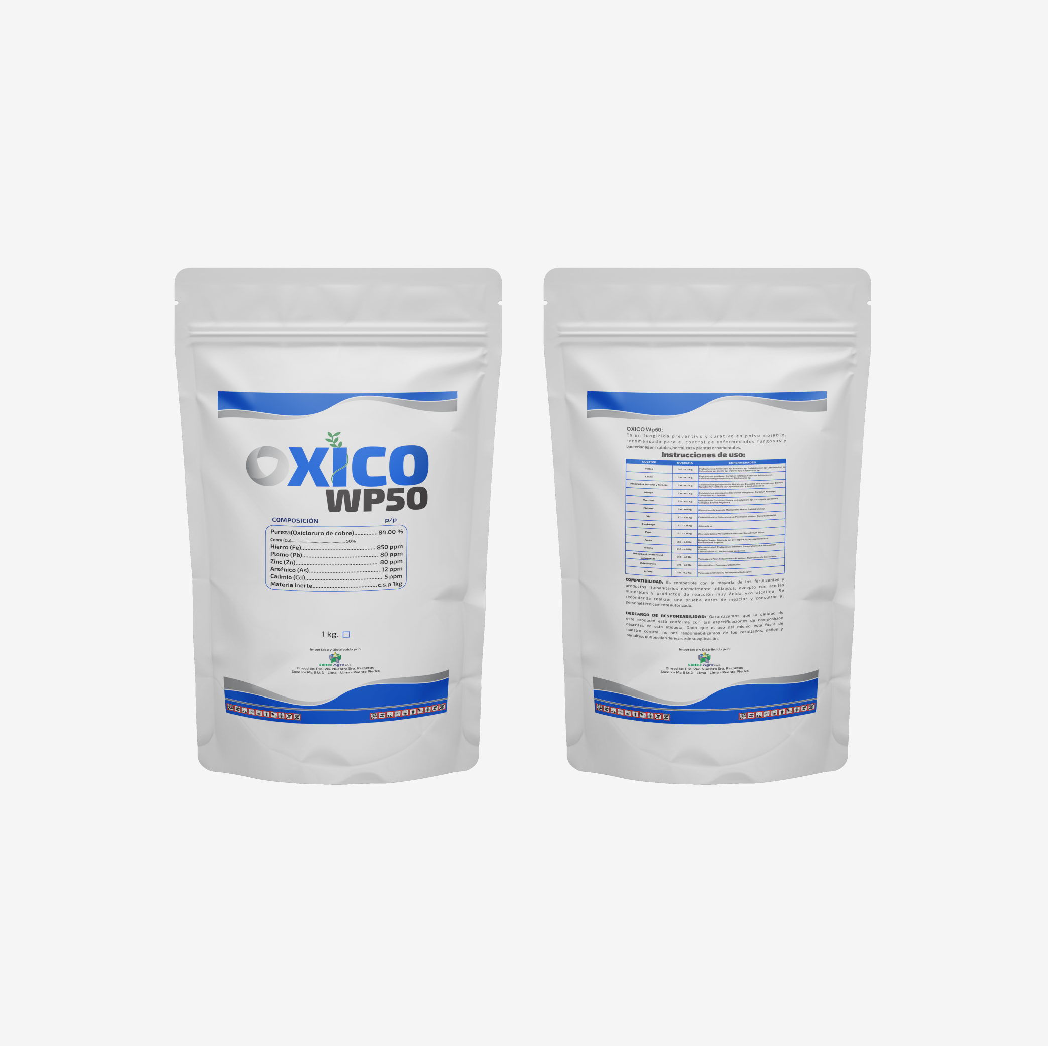 OXICO WP50: Es un fungicida preventivo y curativo en polvo mojable, recomendado para el control de enfermedades fungosas y bacterianas en frutales, hortalizas y plantas ornamentales.