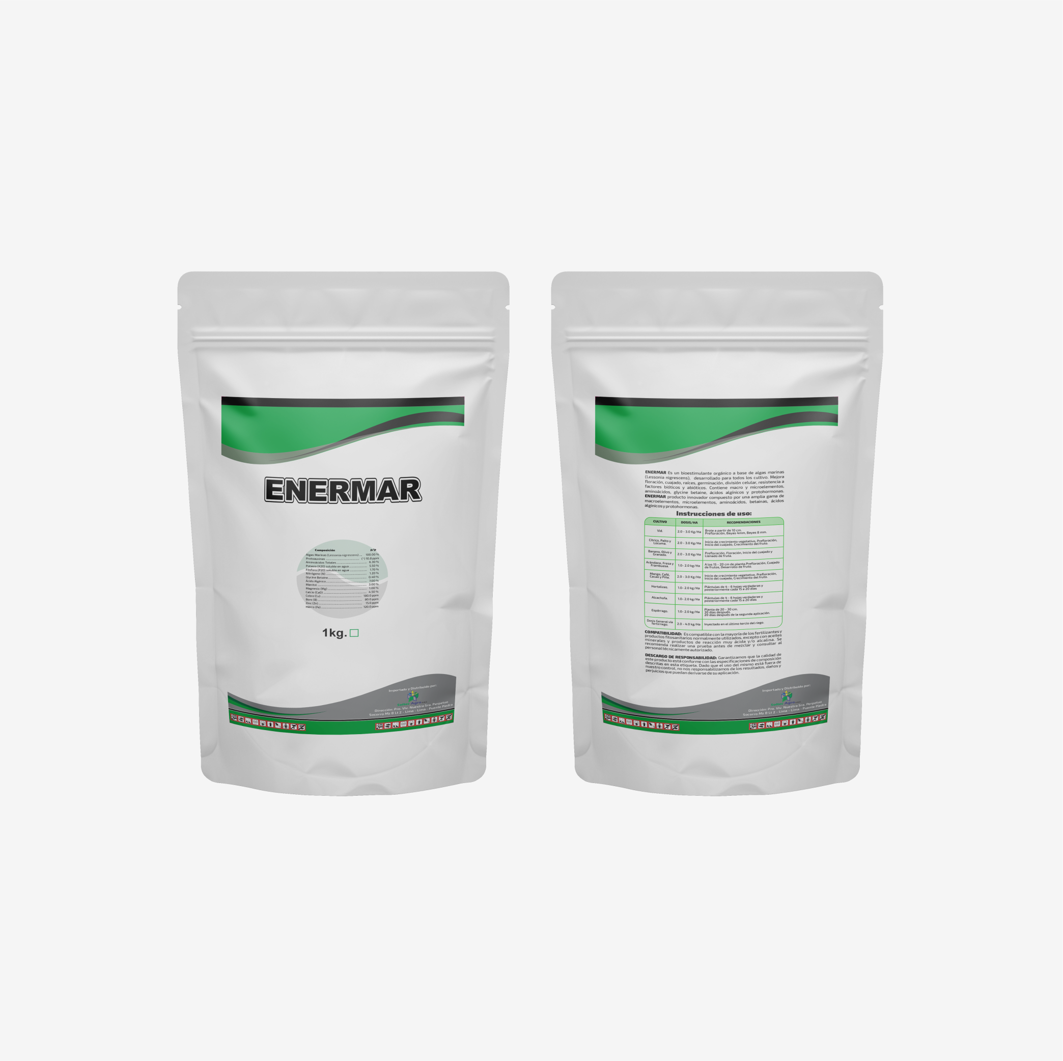 ENERMAR: Es un bioestimulante orgánico a base de algas marinas (Lessonia Nigrescens), desarrollado para todos los cultivos. Mejora floración, cuajado, raíces, germinación, división celular y resistencia a factores bióticos y abióticos. Contiene macro y microelementos, aminoácidos, glycine betaine, ácidos algínicos y protohormonas.