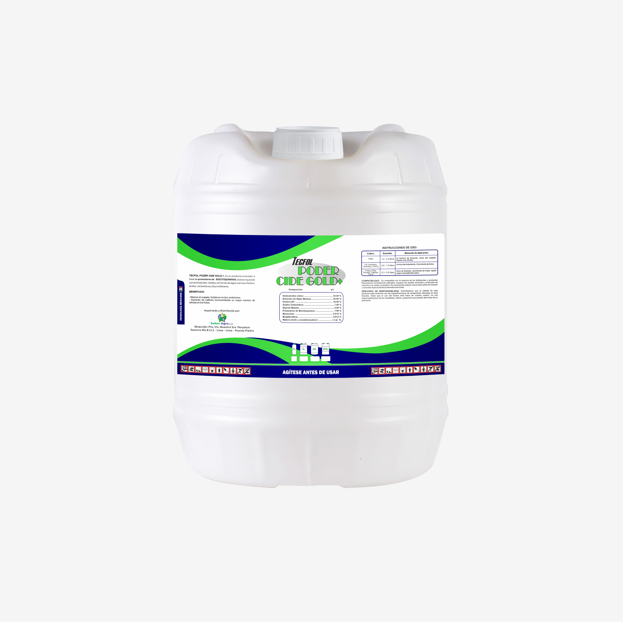 TECFOL PODER CIDE GOLD+: Es un producto innovador a base de promotores de BIOCITOQUININAS, bioauxinas, biogiberalinas y está enriquecido con aminoácidos, extracto de algas marinas, fósforo, ácidos carboxílicos y Glycine Betaine.