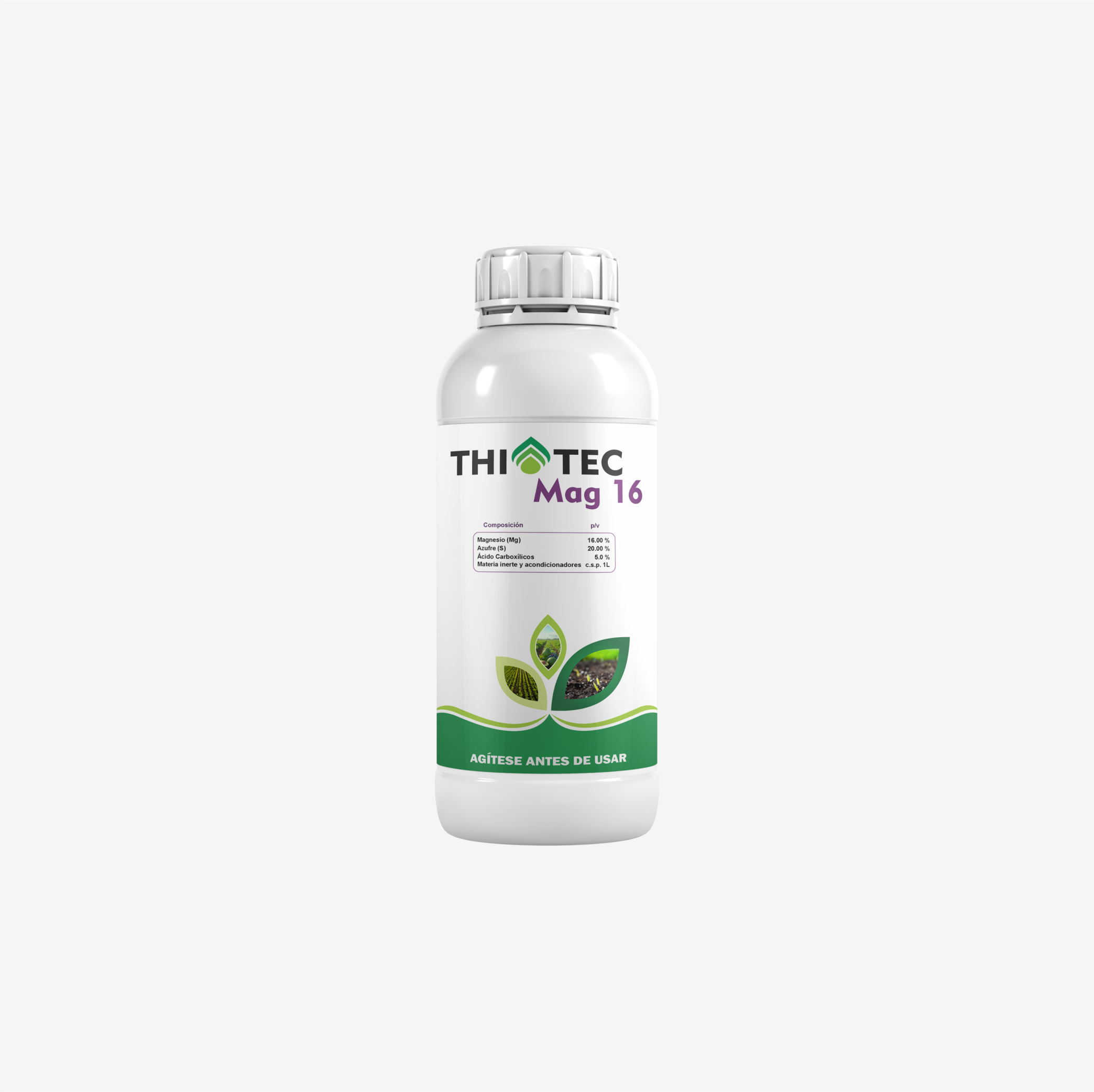 THIOTEC MAG 16: Es un fertilizante líquido a base de Tiosulfato de Magnesio, aporta azufre altamente asimilable el cual actúa como un catalizador que mejora la absorción de otros nutrientes, dando como resultado una mejor eficiencia de los fertilizantes.
